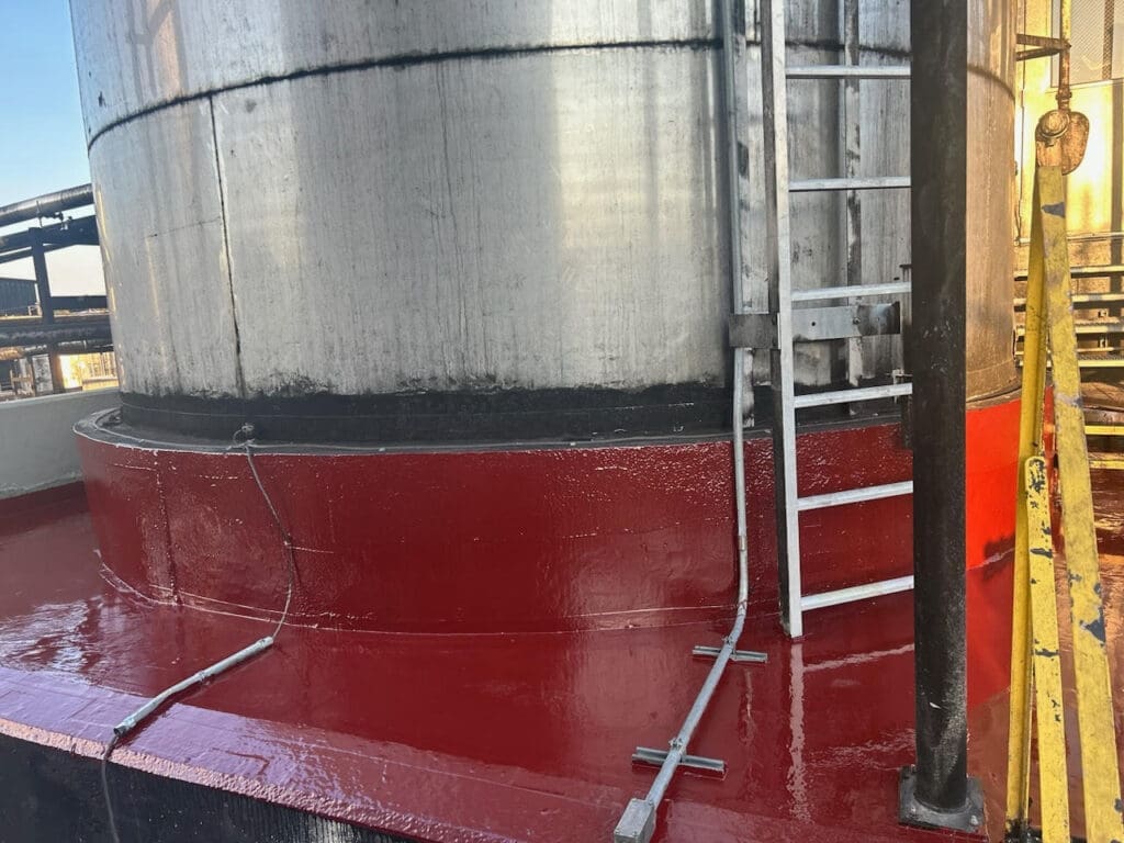 This high-performance lining offers outstanding resistance to chemicals, alcohols, and hydrocarbons, along with excellent impact durability and flexibility. Notably, it cures at temperatures as low as 35ºF—making it ideal for the facility’s operating conditions.