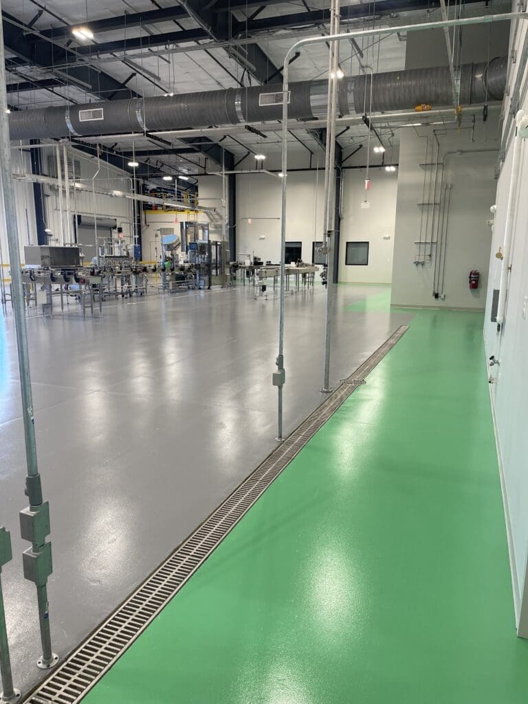 In food and beverage facilities, floors are subjected to constant wear from alcohol exposure, aggressive cleaning agents, and repeated wash downs. Odor and downtime are also major concerns. For this project, we worked closely with the applicator to specify a no-odor, non-skid system designed to meet the realities of a working bottling environment.
